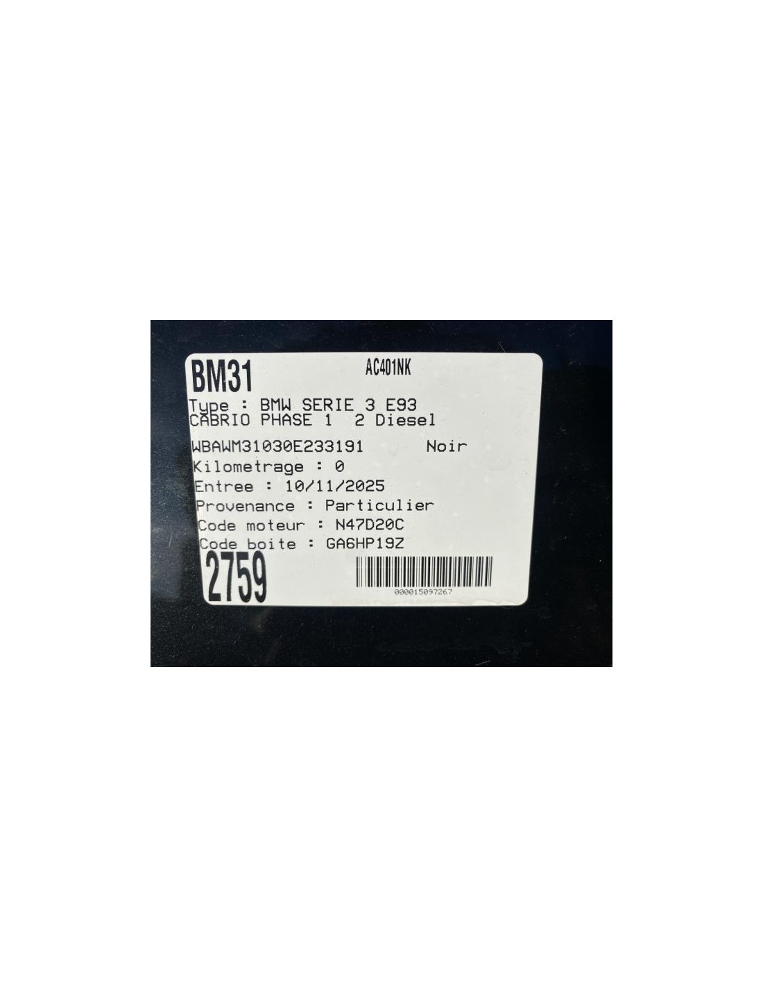 Ceinture arriere gauche BMW SERIE 3 E93 CABRIO PHASE 1 Diesel
