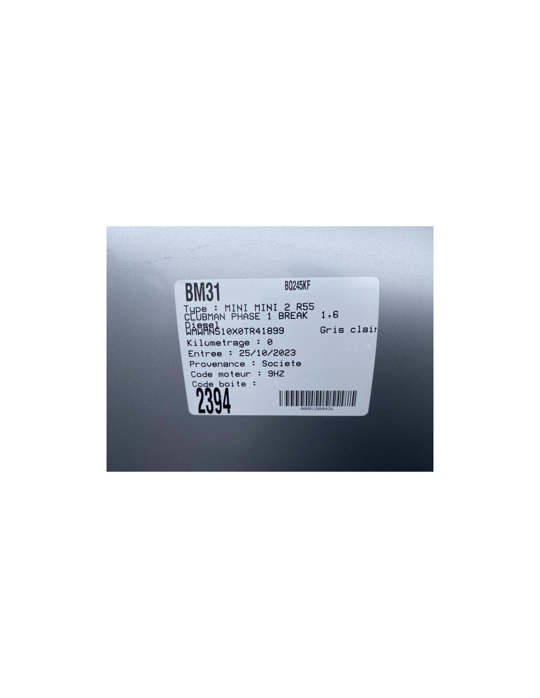 Conduite d'air MINI MINI 2 R55 CLUBMAN PHASE 1 BREAK Diesel