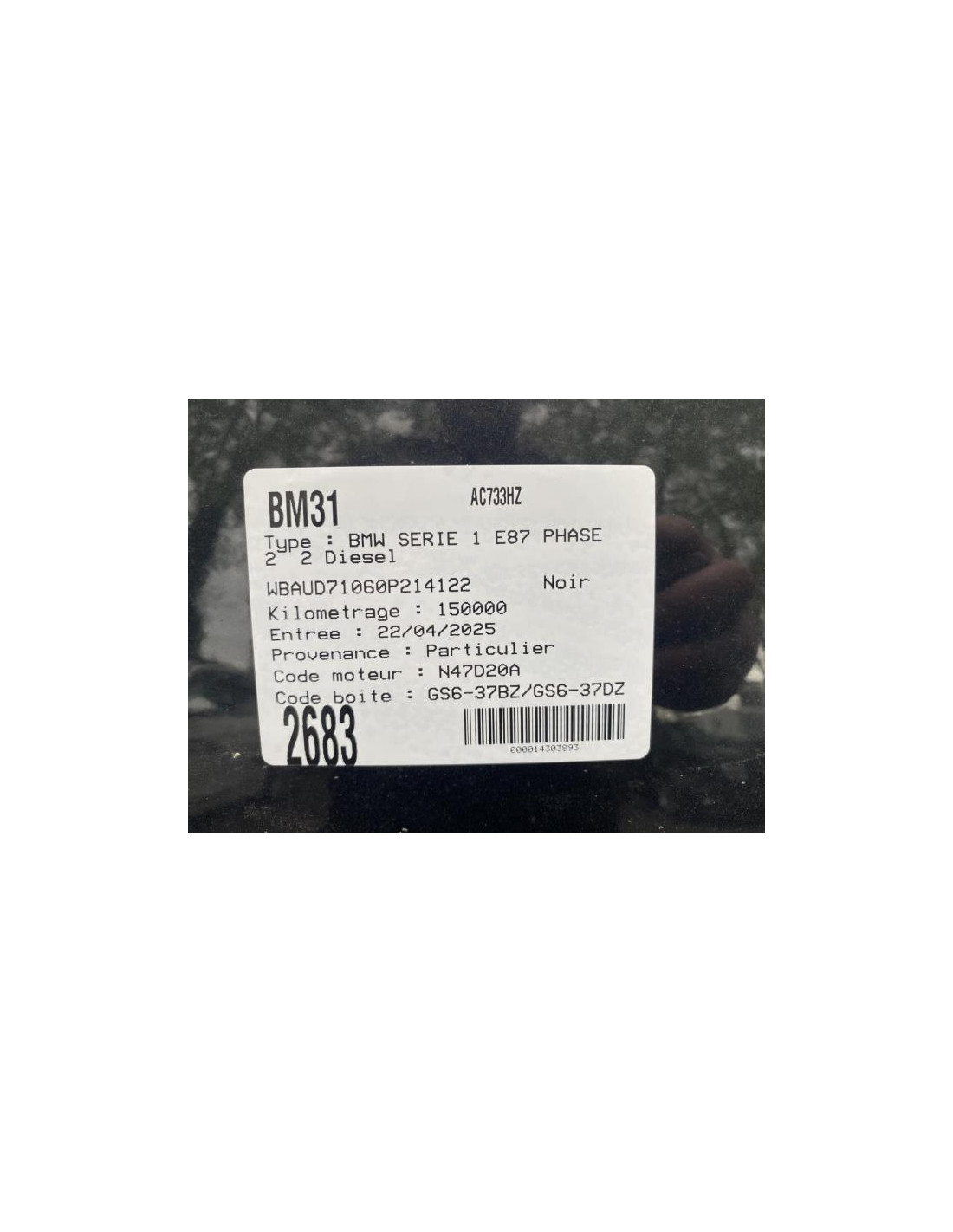 Fusee arriere droit BMW SERIE 1 E87 PHASE 2 Diesel